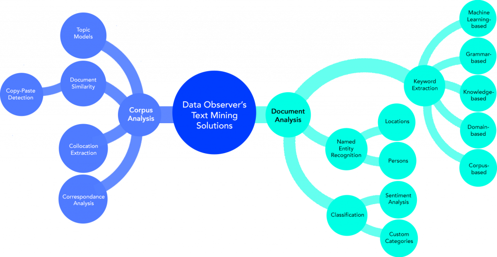 Le coeur de métier de Data Observer est le traitement de « la donnée textuelle » : collecte, structuration, enrichissement, qualification, analyse et visualisation (« text mining »).